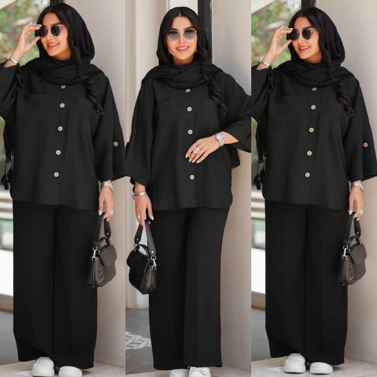 توضیحات: 🍃💕نام : ست حِبه 🍃💕جنس : ابروبادی درجه یک 🍃💕رنگ بندی : مشکی 🍃💕سایز ها : فری 36/46*48 🌹قدشلوار 103 🌹قد شومیز 75 🌹قد آستین از یقه 62 🌹دور سینه 110 در حالت کیمونو این ست خوش قیمت با دوخت مزونی و جنس عالی به هیچ عنوان از دست ندید ⭕️