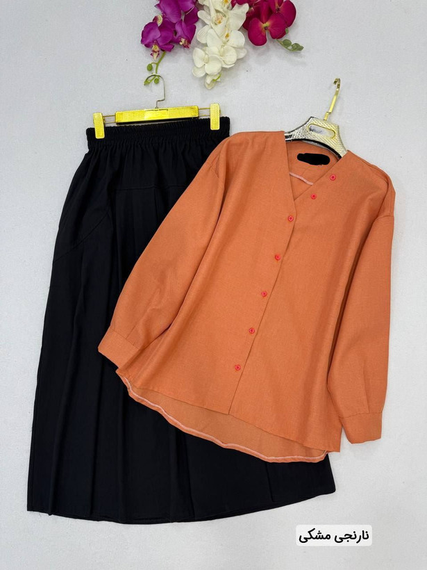 توضیحات: 🌷نام : شومیز دامن نیلگون 🌷جنس : لیننن 🌷رنگ بندی : گلبهی کرمی, گلبهی مشکی, نارنجی سبز, نارنجی مشکی, نسکافه ای سبز, نسکافه ای نسکافه ای 🌷قد دامن 90 🌷قد شومیز جلو65 🌷قد شومیز عقب73 🌷دور سینه 120 🌷قد استین از یقه 70