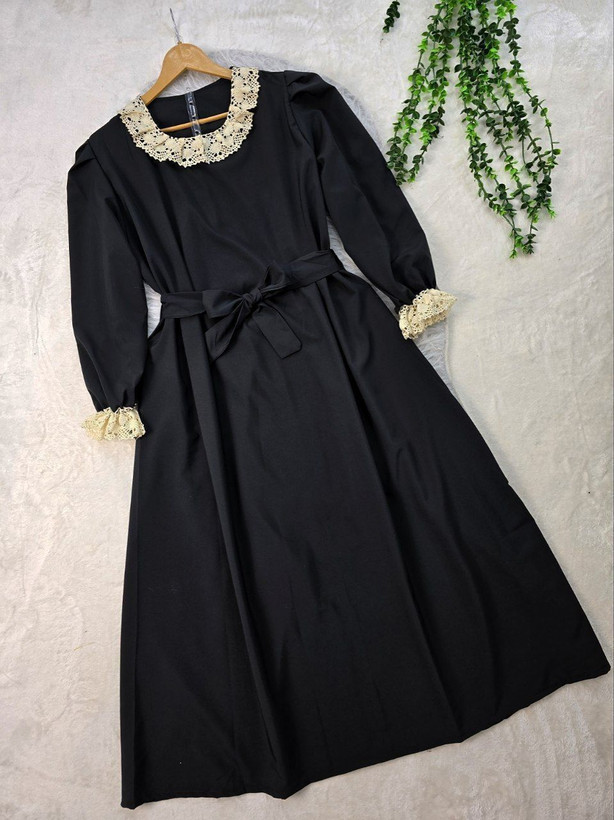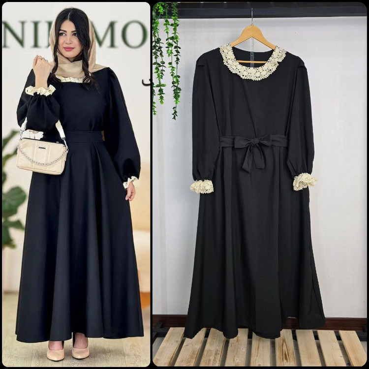 پیراهن بلند ،کاملا پوشیده وبا کیفیت ،یفه پسر آستین گیپوردوزی شده ،برای تو که یکار کیوت و مجلسی میخوای