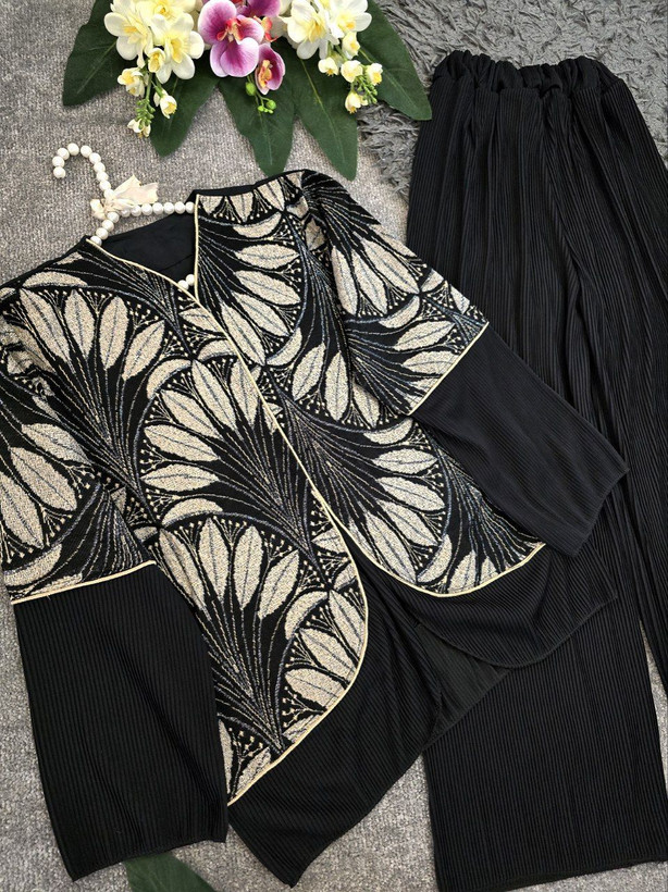 توضیحات: 💞💞🔥NEW COLLECTION🔥 💞💞 🍃💕نام : کت روناک 🍃💕جنس : سوزن دوزی لمه دار و پلیسه روناک 🍃💕رنگ بندی : ((کت)) 🍃💕سایز ها : فری 36/46 ✅قدکار 75سانت حدودا ✅قد آستین 59 سانت از سرشانه ✅دور سینه 110 سانت ✅دور بازو 40 سانت ارسال فووووری