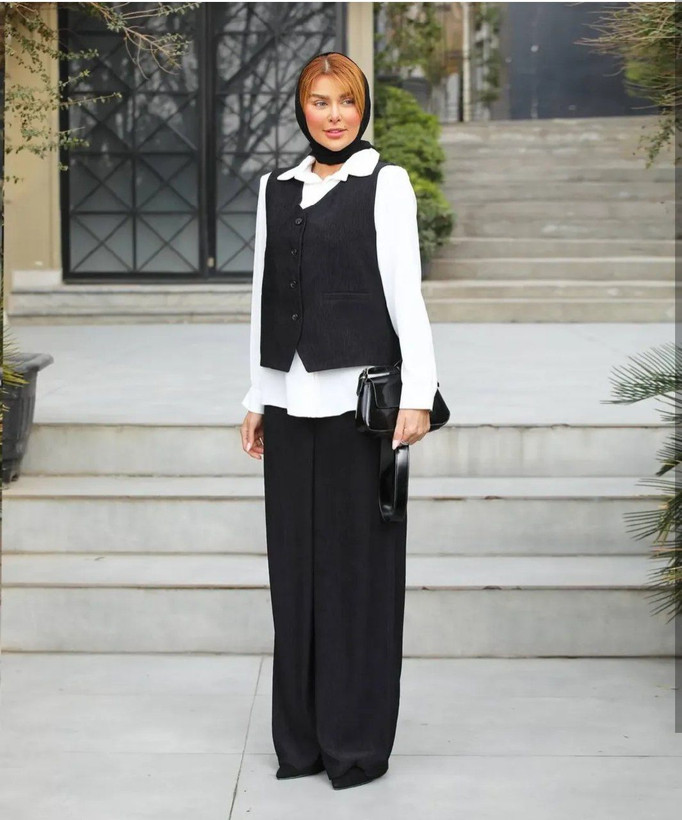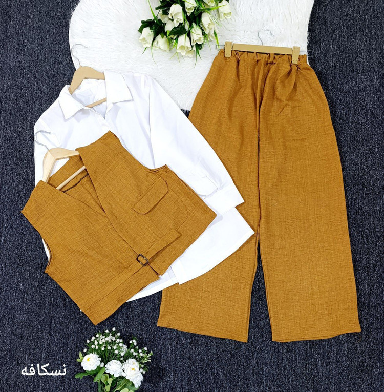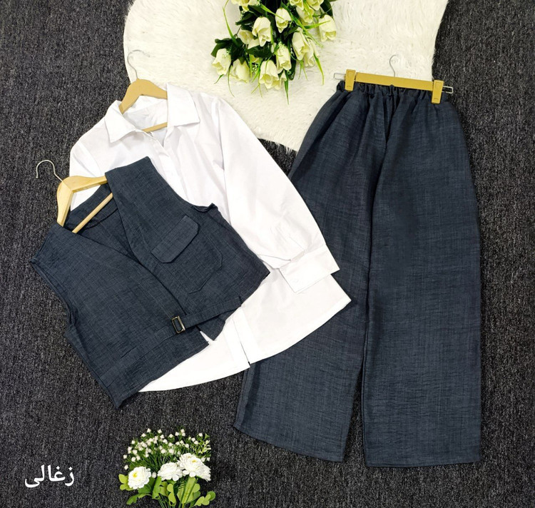 قد شومیز 70 دورسینه 106 آستین 54 قد جلیقه 50 قد شلوار 98 کمر(64_116) باسن 116 فاق 36 ران 68 دمپا 52