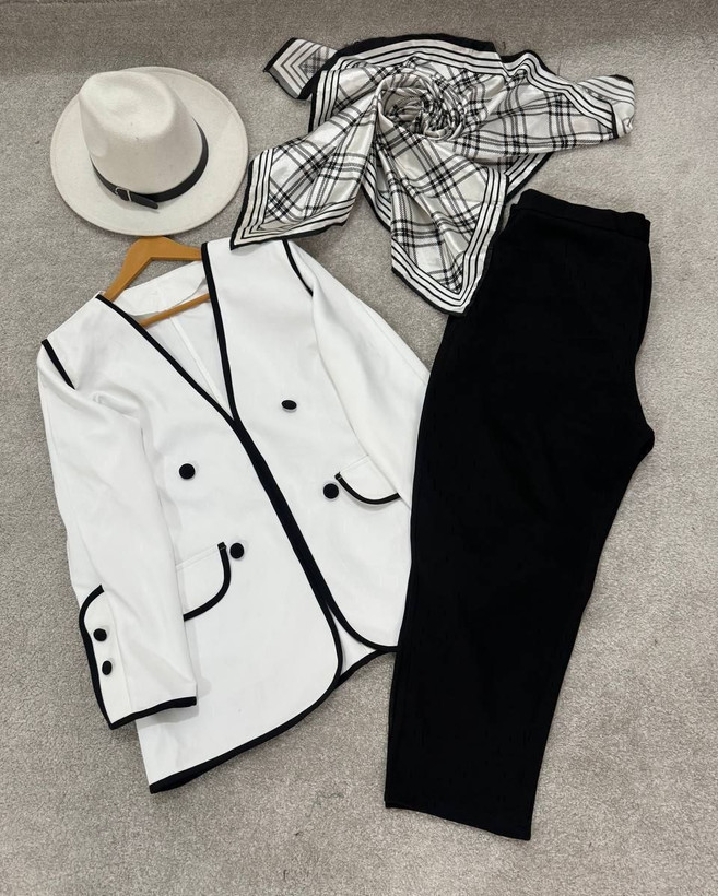 سایر توضیحات: سایز یک برای 38 تا 42 سایز دو برای 44تا48 ⚜قد کت 70 ⚜قد آستین 58 ⚜دور سینه سایز یک 104 ⚜دور سینه سایز دو 110 👌جلو کت کلا لایه کوبی شده ⚜دکمه و جیب نما ⚜قد شلوار 90 ⚜فاق35 ❌ارسال 1 شهریور