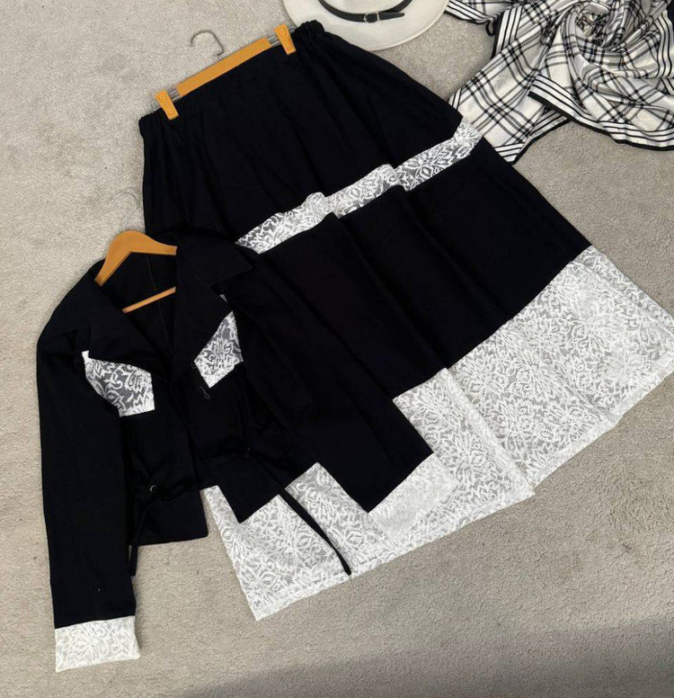 توضیحات: 🍃💕 نام : کت دامن لیلا ✅ 🍃💕 جنس : لنین و تور✅ 🍃💕 رنگ بندی : مشکی, نسکافه ای, سورمه ای, سبز, زیتونی✅ 🍃💕 سایز ها : فری تا 48 ✅