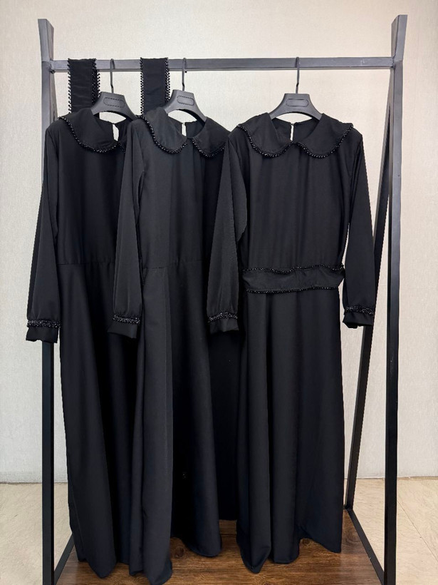 توضیحات: 💞نام : پیراهن سوگلی 💞جنس :الیزه خرجکار طرح کریستال 💞رنگ بندی : مشکی 💞سایز ها : فری38_46