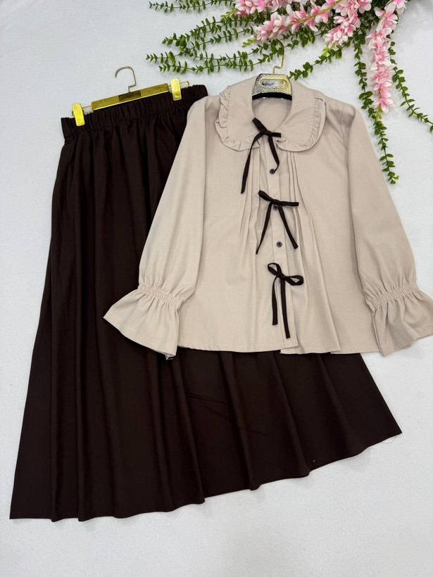 توضیحات: 🍃💕نام : شومیز دامن شکلات 🍃💕جنس : لینن 🍃💕رنگ بندی : تک رنگ